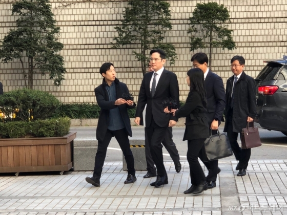 이 부회장이 법정에 도착하기까지 삼성 관계자들은 이 부회장의 모습을 초조하게 바라보고 있었다. 삼성은 이날 선고가 아닌 만큼 별도의 입장을 내놓지 않았다.